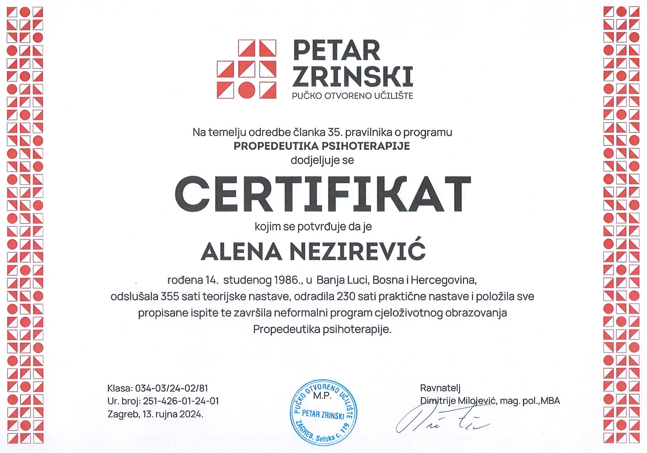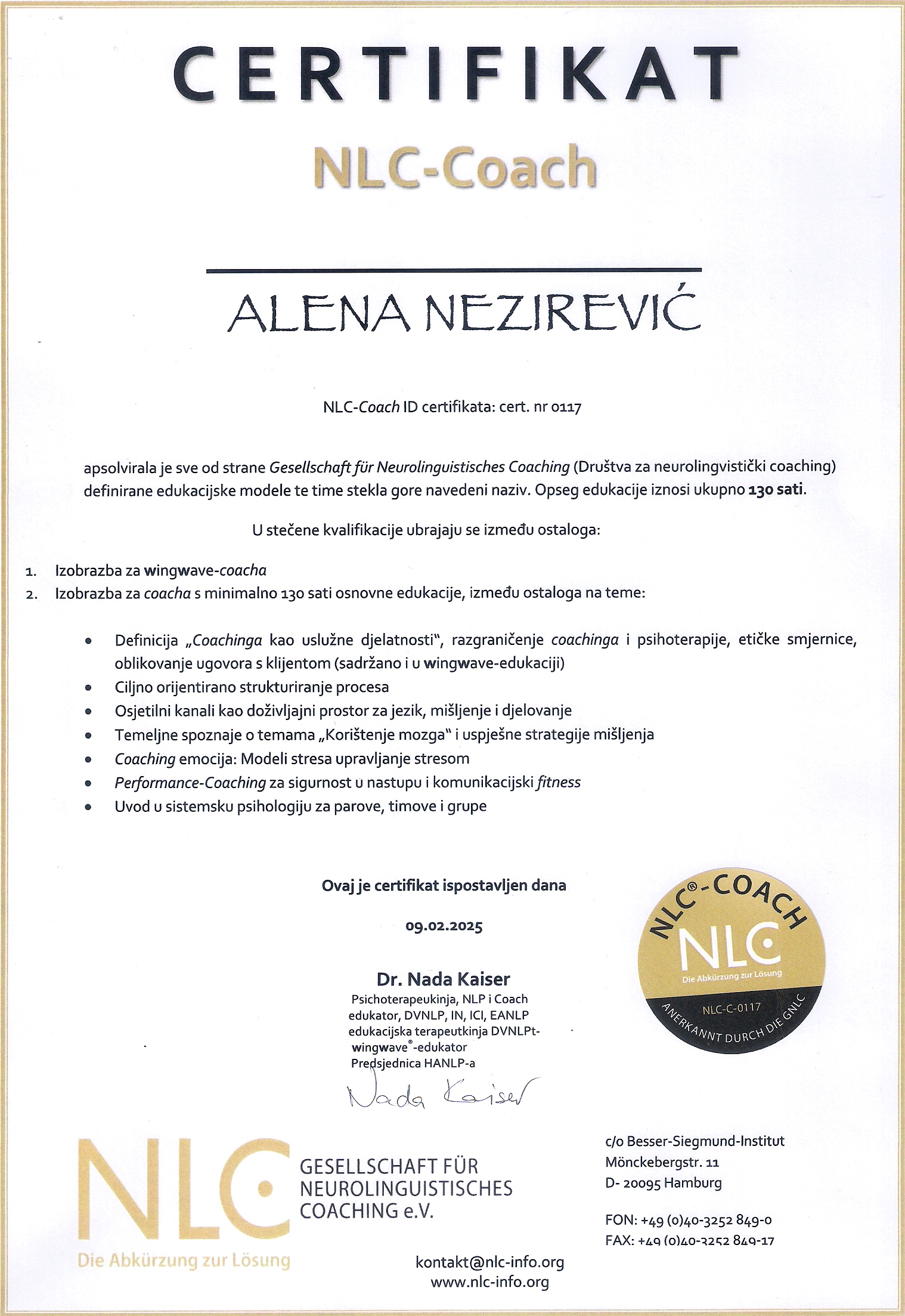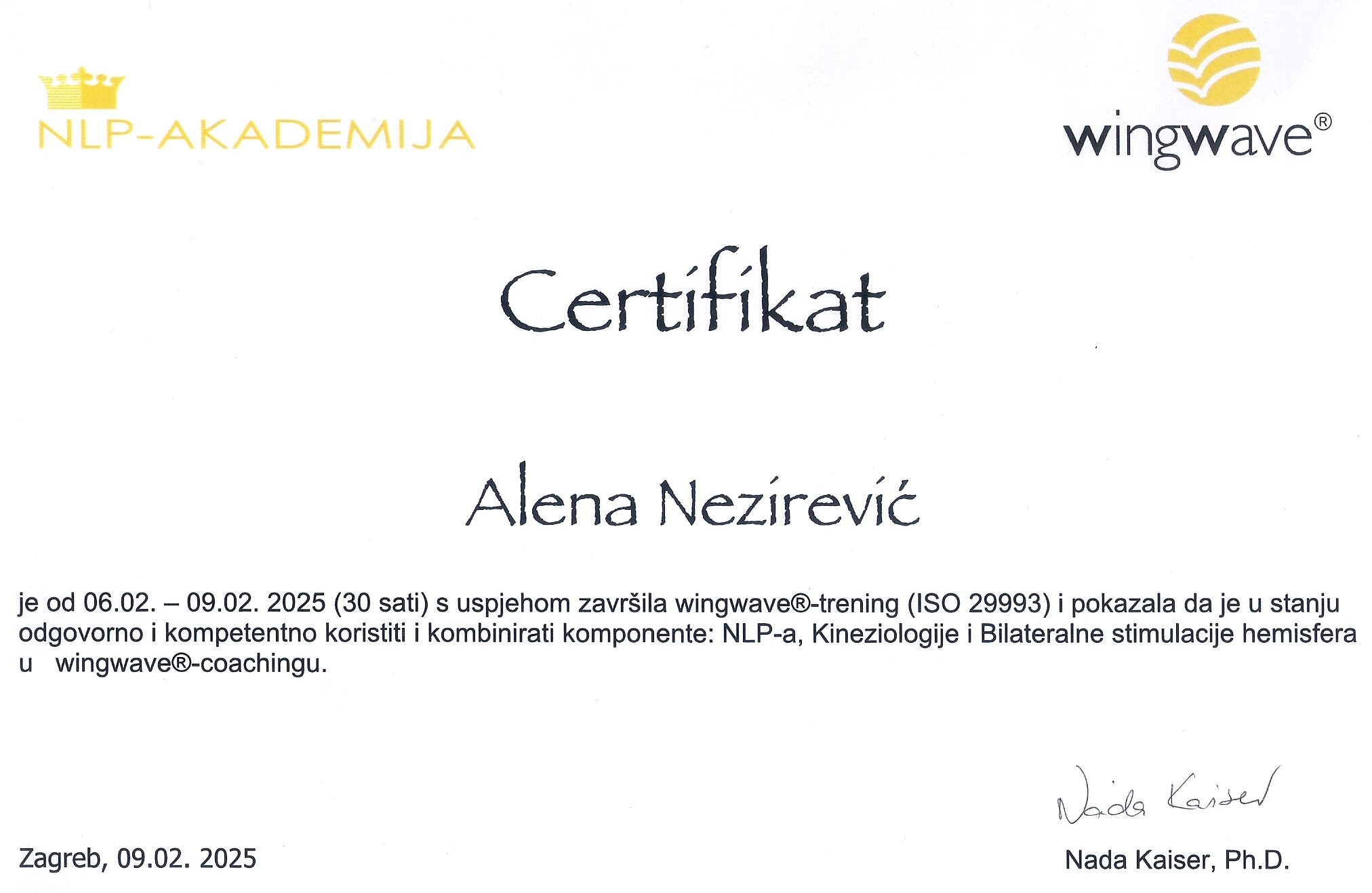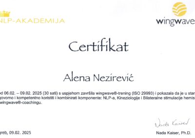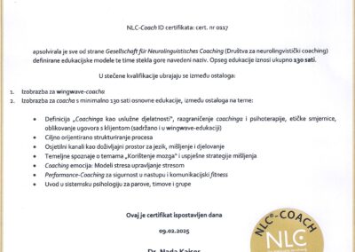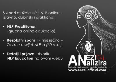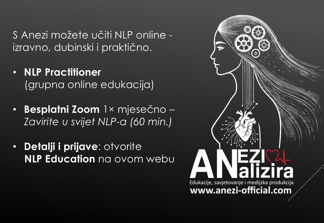Od 2026. krenula sam na edukaciju za NLPt psihoterapeuta, koja je nastavak NLP Practitioner i Master stupnja.