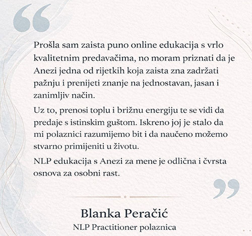 onda je ovaj NLP praktičarski trening tvoje mjesto i ja te s veseljem čekam na tom zajedničkom putu razvoja!